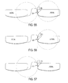FIG. 55 is a schematic, coronal plane cross-sectional view of one embodiment of a total knee replacement prosthesis attached to a tibia, the prosthesis having a convex tibial post and a convex femoral intercondylar notch;