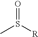 A “sulfoxide” as used herein refers to a sulfinyl functional group, generally depicted as: