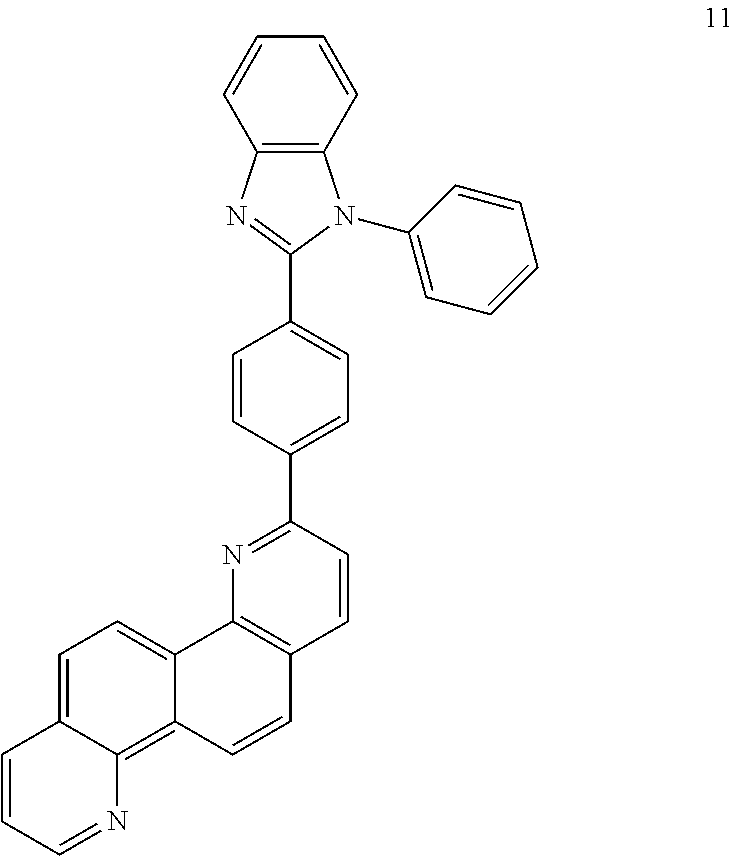 The organic light-emitting diode 10 sequentially includes a substrate 11, a first electrode 12, a hole injection layer 13, a hole transport layer 14, an emission layer 15, an electron transport layer 16, an electron injection layer 17, and a second electrode 18 in this stated order.