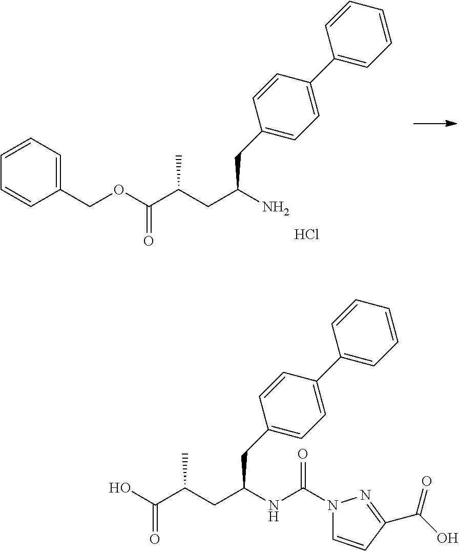 To a solution of (4S)-ethyl 5-(3′-chlorobiphenyl-4-yl)-4-(2-ethoxy-2-oxoacetamido)-2-methylpentanoate (637 mg, 1.43 mmol) in MeOH (40 mL) is added a solution of 50% wt hydrazine (0.09 mL, 1.43 mmol) in MeOH (10 mL) at −20° C. After stirring for 18 hour at room temperature, the reaction mixture is concentrated under reduced pressure to give (45)-ethyl 5-(3′-chlorobiphenyl-4-yl)-4-(2-hydrazinyl-2-oxoacetamido)-2-methylpentanoate (542 mg). HPLC retention time=1.54 minutes (condition A); MS 432.3 (M+1).