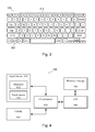 FIG. 1 is a perspective view of a laptop computer 100 with a conventional keyboard 105 for entering text, etc. The laptop computer 100 has a base unit 102 containing the keyboard 105, and a display panel 115 which is hinged to the base unit 102 by hinges 118. A skilled computer user can generally type on the keyboard 105 with both hands 123 and 124.