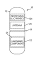 According to one embodiment, the portion of the volume of the interchangeable hardware components 24 occupy a greater portion of the volume of the shell 12 than the non interchangeable hardware components (e.g., display 14, user input device 16, processing electronics 104, and antenna 20. According to another embodiment, the interchangeable hardware components 24 occupy at least 50 percent of the volume of the shell 12. According to another embodiment, the interchangeable hardware components 24 occupy at least 90 percent of the volume of the shell 12.
