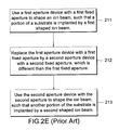 FIG. 2C to FIG. 2E illustrate how different shaped ion beams are generated and a corresponding flowchart according to the usage of the conventional fixed aperture.