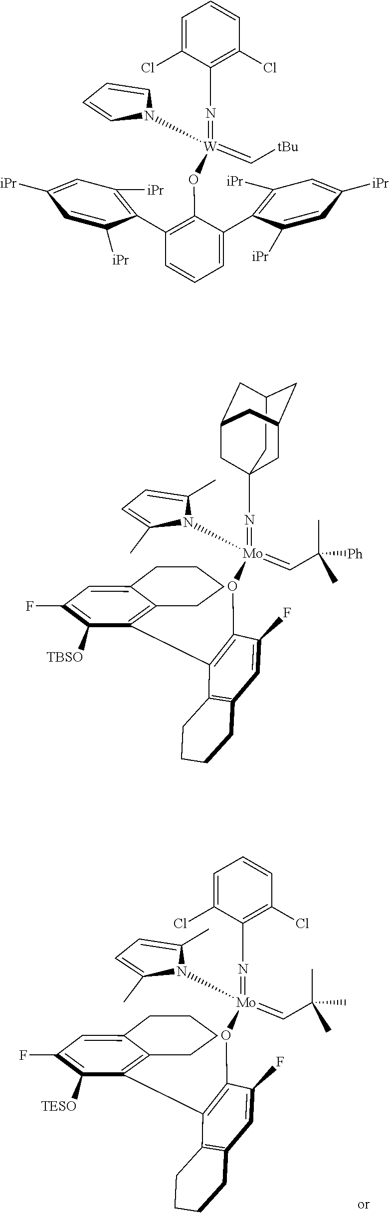 - LYDBEQCVSKNZTD-UHFFFAOYSA-K CC.CC.CC.CC1=CC=C(C)N1[Mo](=CC(C)(C)C1=CC=CC=C1)(=NC1=C(C(F)(F)F)C=CC=C1)OC1=C(C2=C3/CCCC/C3=C/C(Br)C\2C)/C2=C(\C=C/1Br)CCCC2.CC1=CC=C(C)N1[Mo](=CC(C)(C)C1=CC=CC=C1)(=NC1=C(C(F)(F)F)C=CC=C1)OC1=C(C2=C3/CCCC/C3=C/C(Br)C\2C)/C2=C(\C=C/1Br)CCCC2.CC1=CC=C(C)N1[W](=CC(C)(C)C)(=NC1=C(Cl)C=CC=C1Cl)OC1=C(C2=C3/CCCC/C3=C/C(Br)C\2C)/C2=C(\C=C/1Br)CCCC2 Chemical compound CC.CC.CC.CC1=CC=C(C)N1[Mo](=CC(C)(C)C1=CC=CC=C1)(=NC1=C(C(F)(F)F)C=CC=C1)OC1=C(C2=C3/CCCC/C3=C/C(Br)C\2C)/C2=C(\C=C/1Br)CCCC2.CC1=CC=C(C)N1[Mo](=CC(C)(C)C1=CC=CC=C1)(=NC1=C(C(F)(F)F)C=CC=C1)OC1=C(C2=C3/CCCC/C3=C/C(Br)C\2C)/C2=C(\C=C/1Br)CCCC2.CC1=CC=C(C)N1[W](=CC(C)(C)C)(=NC1=C(Cl)C=CC=C1Cl)OC1=C(C2=C3/CCCC/C3=C/C(Br)C\2C)/C2=C(\C=C/1Br)CCCC2 LYDBEQCVSKNZTD-UHFFFAOYSA-K 0.000 description 1