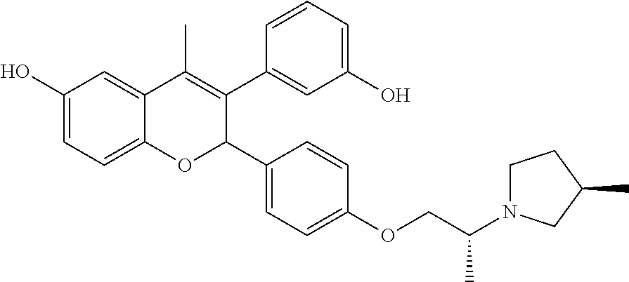 - YKDMPXQGNUAFHO-QMQXECRNSA-N CC1=C(C2=CC=C(F)C=C2)[C@@H](C2=CC=C(OC[C@H](C)N3CC[C@@H](C)C3)C=C2)OC2=CC=C(O)C=C21 Chemical compound CC1=C(C2=CC=C(F)C=C2)[C@@H](C2=CC=C(OC[C@H](C)N3CC[C@@H](C)C3)C=C2)OC2=CC=C(O)C=C21 YKDMPXQGNUAFHO-QMQXECRNSA-N 0.000 description 3