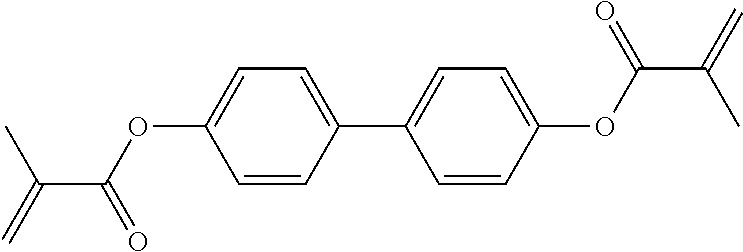 - PXWMMTCHSXLKBQ-UHFFFAOYSA-N C=C(C)C(=O)OC1=CC=C(C2=CC=C(OC(=O)C(=C)C)C=C2)C=C1.C=C(C)C(=O)OCCC(=O)OC1=CC=C(C2=CC(OC(=O)C(=C)C)=CC(C3=CC=C(OC(=O)CCOC(=O)C(=C)C)C=C3)=C2)C=C1.C=C(C)C(=O)OCCCOC1=CC=C(C2=CC(C3=CC(F)=C(OCCCOC(=O)C(=C)C)C=C3)=CC(OC(=O)C(=C)C)=C2)C=C1F.C=C(C)C(=O)OCCCOC1=CC=C(C2=CC(OC(=O)C(=C)C)=CC(C3=CC=C(OCCCOC(=O)C(=C)C)C=C3)=C2)C=C1 Chemical compound C=C(C)C(=O)OC1=CC=C(C2=CC=C(OC(=O)C(=C)C)C=C2)C=C1.C=C(C)C(=O)OCCC(=O)OC1=CC=C(C2=CC(OC(=O)C(=C)C)=CC(C3=CC=C(OC(=O)CCOC(=O)C(=C)C)C=C3)=C2)C=C1.C=C(C)C(=O)OCCCOC1=CC=C(C2=CC(C3=CC(F)=C(OCCCOC(=O)C(=C)C)C=C3)=CC(OC(=O)C(=C)C)=C2)C=C1F.C=C(C)C(=O)OCCCOC1=CC=C(C2=CC(OC(=O)C(=C)C)=CC(C3=CC=C(OCCCOC(=O)C(=C)C)C=C3)=C2)C=C1 PXWMMTCHSXLKBQ-UHFFFAOYSA-N 0.000 description 1