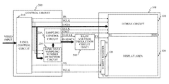 - the H drive circuit 110 receives the drive control signal and the video data from the panel control circuit 210 and another drive control signal from the sampling control circuit 220 to drive pixels of each of horizontal pixel rows included in the display area 130 .