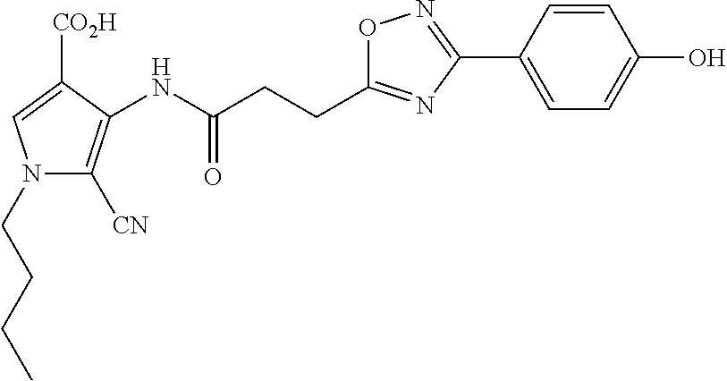 - JUXPBPYFWSNGRI-UHFFFAOYSA-N CCC1=C(C2=CC=C(O)C=C2)ON=C1CCC(=O)CC1=CN(C)C=C1C(=O)O Chemical compound CCC1=C(C2=CC=C(O)C=C2)ON=C1CCC(=O)CC1=CN(C)C=C1C(=O)O JUXPBPYFWSNGRI-UHFFFAOYSA-N 0.000 description 1