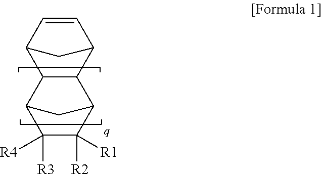 In the cyclic olefin compound, a polar functional group used as a substituent for the R1 to R4, that is, a polar functional group including at least one of oxygen, nitrogen, phosphor, sulfur, silicon, and boron may be selected from the group consisting of the following functional groups, or otherwise, comprise at least one of oxygen, nitrogen, phosphor, sulfur, silicon, and boron: