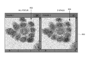 In certain embodiments involving display of both the all-focus image and the Z-stack data, the viewpoints of the two images are synchronized, i.e. the display for the all-focus image display shows the same spatial area as shown by the display for the Z-stack data.