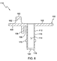 As also shown in FIG. 7, the relative longitudinal lengths of the second narrow or small portion 34 of the sheath 16 and sheath engagement member 118 may be configured such that the narrow or small portion 34 of the sheath 16 passes through or over the entirety of the sheath engagement member 118 when the device 110 and column 10 are coupled. For example, in some embodiments the sheath engagement member 118 at the aperture 120 may be about 2 mm thick in the longitudinal direction, and the second narrow portion 34 of the sheath 16 may be about 4 mm to about 5 mm thick in the longitudinal direction. In other exemplary embodiments, the relative longitudinal lengths of the second narrow or small portion 34 of the sheath 16 and sheath engagement member 118 may be configured such that only a portion of the longitudinal length of the narrow or small portion 34 of the sheath 16 passes through or over the sheath engagement member 118 when the device 110 and column 10 are coupled.