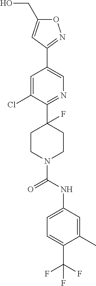 - BPEWZLBTVXPSBA-UHFFFAOYSA-N CC(C)(C)OC(=O)N1CC=C(C2=NC=C(C(=O)O)C=C2Cl)CC1.CC(C)(N)CO.CC1=CC=C(NC(=O)N2CC=C(C3=NC=C(C(=O)NC(C)(C)CO)C=C3Cl)CC2)C=C1.CC1=CC=C(NC(=O)N2CC=C(C3=NC=C(C(=O)O)C=C3Cl)CC2)C=C1.CC1=CC=C(NC(=O)N2CC=C(C3=NC=C(C4=NC(C)(C)CO4)C=C3Cl)CC2)C=C1.Cl.O=C(O)C1=CN=C(C2=CCNCC2)C(Cl)=C1.O=C=NC1=CC=C(C(F)(F)F)C=C1.[I-70] Chemical compound CC(C)(C)OC(=O)N1CC=C(C2=NC=C(C(=O)O)C=C2Cl)CC1.CC(C)(N)CO.CC1=CC=C(NC(=O)N2CC=C(C3=NC=C(C(=O)NC(C)(C)CO)C=C3Cl)CC2)C=C1.CC1=CC=C(NC(=O)N2CC=C(C3=NC=C(C(=O)O)C=C3Cl)CC2)C=C1.CC1=CC=C(NC(=O)N2CC=C(C3=NC=C(C4=NC(C)(C)CO4)C=C3Cl)CC2)C=C1.Cl.O=C(O)C1=CN=C(C2=CCNCC2)C(Cl)=C1.O=C=NC1=CC=C(C(F)(F)F)C=C1.[I-70] BPEWZLBTVXPSBA-UHFFFAOYSA-N 0.000 description 1
