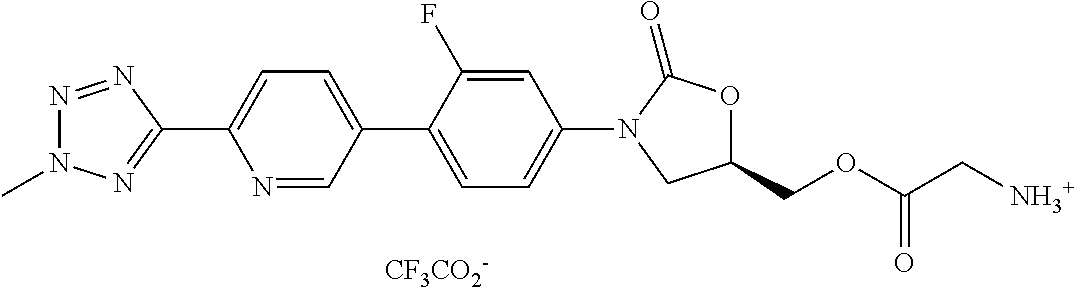 - 3) (S)-3-(4-(2-(5-glycyloxymethylisoxazol-3-yl)pyridin-5-yl)-3-fluorophenyl)-2-oxo-5-oxazolidinylmethyl acetamide trifluoroacetic acid,