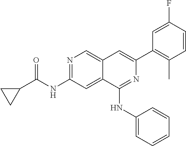 - MCWRDYCOSDQWDO-UHFFFAOYSA-N CC1=C(C2=CC3=CN=C(NC(=O)C4CC4)C=C3C=C2)C(Cl)=CC=C1 Chemical compound CC1=C(C2=CC3=CN=C(NC(=O)C4CC4)C=C3C=C2)C(Cl)=CC=C1 MCWRDYCOSDQWDO-UHFFFAOYSA-N 0.000 description 3