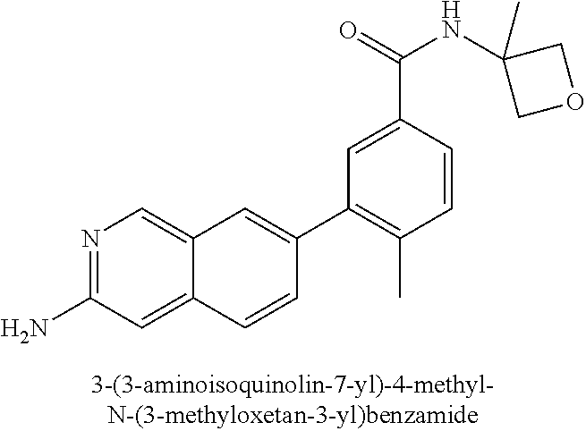 - MDJQRCMOYQEYEZ-UHFFFAOYSA-N CC1=C(C2=CC3=CN=C(N)C=C3C=C2)C=C(C(=O)CC2(C)COC2)C=C1 Chemical compound CC1=C(C2=CC3=CN=C(N)C=C3C=C2)C=C(C(=O)CC2(C)COC2)C=C1 MDJQRCMOYQEYEZ-UHFFFAOYSA-N 0.000 description 3