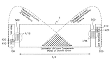 FIG. 4 is a diagram schematically illustrating current components shared on a ground surface by a plurality of planar inverted-F antennas that constitute a MIMO/diversity antenna according to the present invention; and