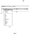 In the submenu portion 906 of the shortcut menu 904, the user may make a selection from among the submenus. The listing of submenus and/or functions listed in the shortcut menu 904 is different than those listed in the shortcut menus displayed in FIGS. 4-8 due to the difference in context. The submenus and/or functions shown in FIGS. 4-8 are for a musical arrangement context while the submenus and/or functions shown in FIG. 9 are those for a musical score context. In this score context, the submenus include a listing in chronological order from top to bottom: “Accidentals”, “Stems,” “Beaming,” “Ties,” “Syncopation,” “Interpretation,” “Independent,” “Voice/Staff Assignment,” and “Colors.” These options relate to manipulating or interacting with the musical score. Objects, such as a MIDI file, can be displayed in more than one context. For example a MIDI file object can be displayed in a musical arrangement context and a score context.