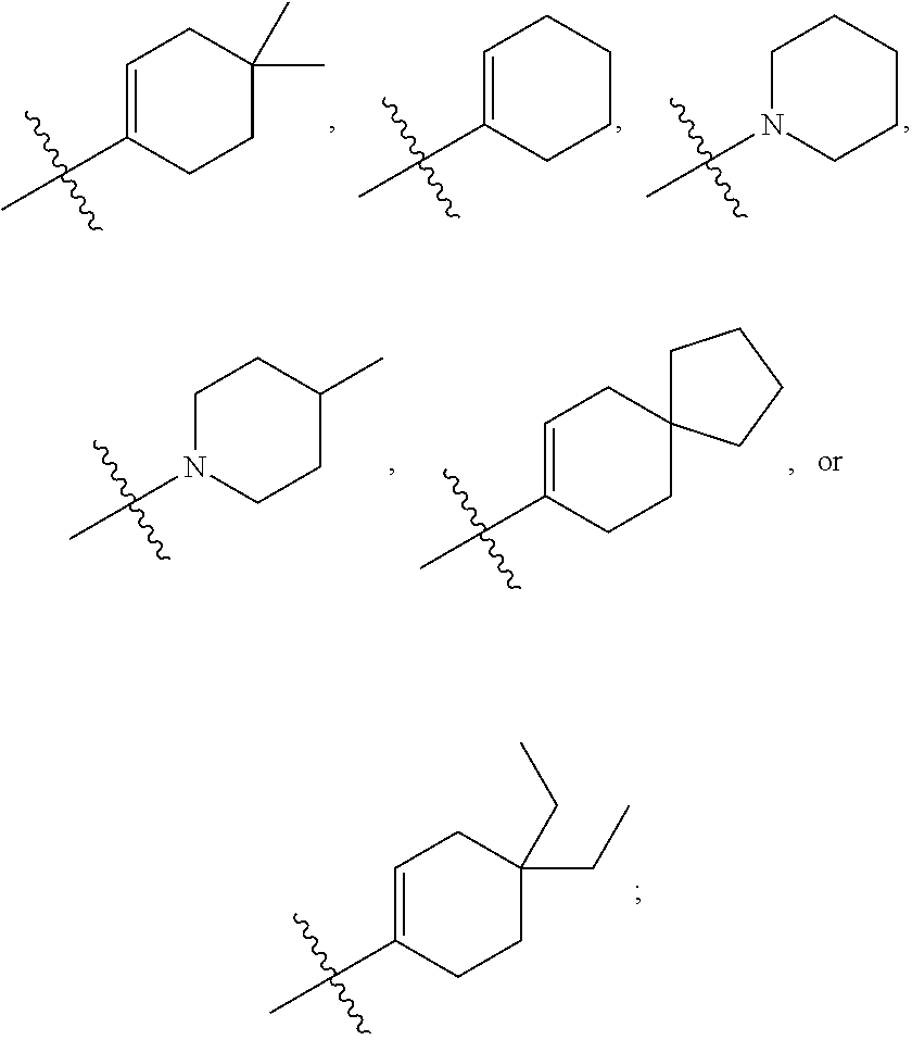 - R2 is cycloalkyl (including cyclohexenyl, and cycloheptenyl), spiro-substituted cycloalkenyl (including spiro[2.5]oct-5-enyl, spiro[3.5]non-6-enyl, spiro[4.5]dec-7-enyl, and spiro[5.5]undec-2-enyl) heterocyclyl (including piperidinyl), spirosubstituted piperidinyl (including 3-aza-spiro[5.5]undecanyl, and 8-aza-spiro[4.5]decanyl), thiophenyl, dihydrosulfonopyranyl, phenyl, furanyl, tetrahydropyridyl, or dihydropyranyl, any of which may be independently substituted with one or two of each of the following: chloro, fluoro, hydroxy, C(1-3)alkyl, and C(1-4)alkyl (said substituted cycloalkyls include 4,4-dimethyl cyclohexenyl, 4,4-diethyl cyclohexenyl, 4-methyl cyclohexenyl, 4-ethyl cyclohexenyl, 4-n-propyl cyclohexenyl, 4-iso-propyl cyclohexenyl, and 4-tert-butyl cyclohexenyl; said substituted piperidinyls include 4-methyl piperidinyl, 4-ethyl piperidinyl, 4-(1′ hydroxyeth-2′yl)piperidinyl, and 4,4 dimethyl piperidinyl);