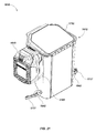 FIG. 21 illustrates details of an alternate embodiment of a stow bin assembly;