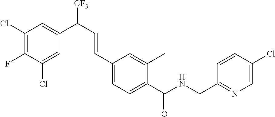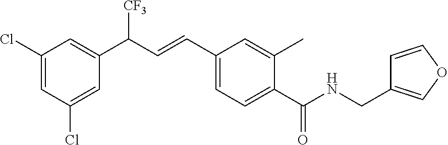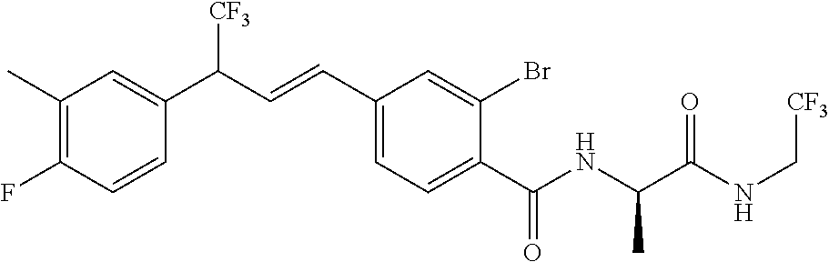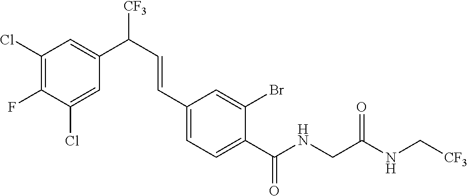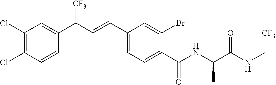 In another embodiment of this invention R11 may be selected from any combination of one or more of the following —C(═O)N(H)(C((CH3)2)C(═O)N(H)(CH2CF3)), C(═O)N(H)(CH(CH3)C(═O)N(H)(CH2CF3)), C(═O)N(H)(CH(CH2CH3)C(═O)N(H)(CH2CF3)), C(═O)N(H)(CH(CH3)C(═S)N(H)(CH2CF3)), C(═O)N(H)(C((CH3)2)C(═S)N(H)(CH2CF3)), and C(═S)N(H)(C((CH3)2)C(═S)N(H)(CH2CF3)).