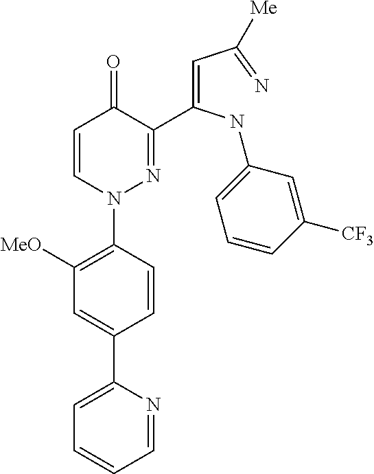 - LXWTZJCQTINFEZ-UHFFFAOYSA-N 1-ethyl-6-methyl-3-[4-(3-methylimidazo[4,5-b]pyridin-2-yl)oxyphenyl]imidazo[4,5-b]pyridin-2-one Chemical compound C1=CN=C2N(C)C(OC3=CC=C(C=C3)N3C4=NC=C(C)C=C4N(C3=O)CC)=NC2=C1 LXWTZJCQTINFEZ-UHFFFAOYSA-N 0.000 claims description 3
