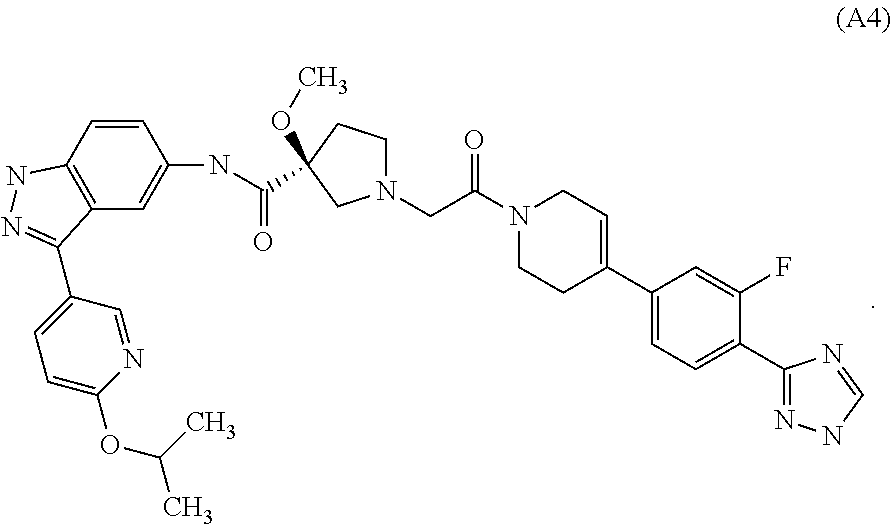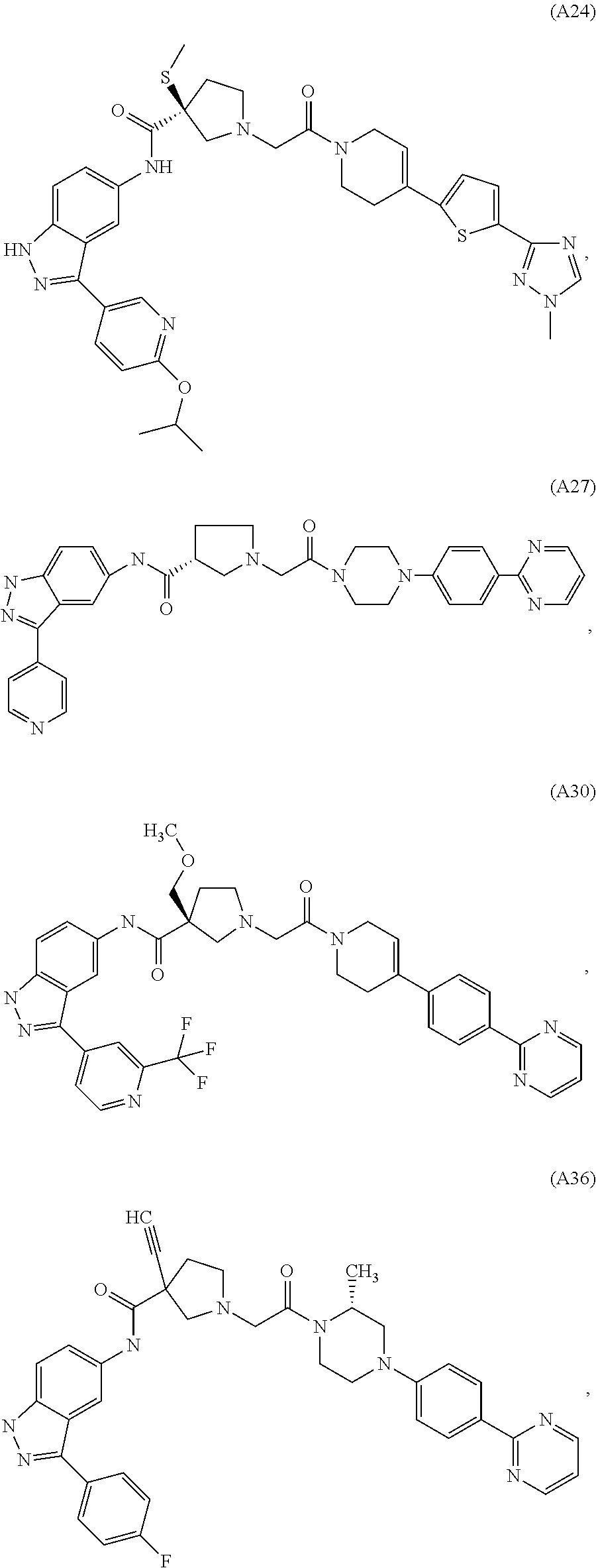 or any other ERK inhibitor, e.g., as discussed herein, e.g., under the section entitled “ERK inhibitors”. In an embodiment of the invention, the medical condition or tumor or blood cancer is a member selected from the group consisting of: lung cancer, lung adenocarcinoma, non small cell lung cancer, pancreatic cancer, pancreatic carcinoma, exocrine pancreatic carcinoma, colon cancer, colorectal carcinoma, colon adenocarcinoma, colon adenoma, myeloid leukemia, acute myelogenous leukemia, chronic myelogenous leukemia, chronic myelomonocytic leukemia, thyroid cancer, myelodysplastic syndrome, bladder carcinoma, epidermal carcinoma, melanoma, breast cancer, prostate cancer, head and neck cancer, squamous cell cancer of the head and neck, ovarian cancer, brain cancer, glioma, glioma blastoma multiforme, cancer of mesenchymal origin, fibrosarcoma, rhabdomyosarcoma, sarcoma, tetracarcinomas, neuroblastoma, kidney carcinoma, hepatoma, non-Hodgkin's lymphoma, multiple myeloma, and anaplastic thyroid carcinoma. In an embodiment of the invention, the medical condition or tumor or blood cancer is any such condition or tumor or cancer mediated by the expression and/or activity of ERK1 and/or ERK2.