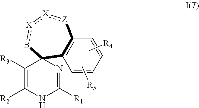 - PUUGSNWIWQLWDB-UHFFFAOYSA-N CCOC(=O)C1=C(C)NC(C2=NC=CC=C2)=NC1(C)C1=CC=C(F)C=C1 Chemical compound CCOC(=O)C1=C(C)NC(C2=NC=CC=C2)=NC1(C)C1=CC=C(F)C=C1 PUUGSNWIWQLWDB-UHFFFAOYSA-N 0.000 description 7