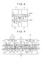 FIG. 8 is an enlarged top plan view showing a structure of a portion in the vicinity of a well contact shown in FIG. 7;