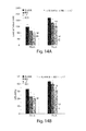 The release kinetics of 20% (w/v) composite fibers loaded with 1.5% (w/w) actual DXM are shown in FIG. 26 panel B. Composite fibers were formulated from ratios of 1:1 (SF-20a), 1:2 (SF-20b), 1:3 (SF-20c), and 1:4 (SF-20d) PLGA to PLLA (20-50% PLGA content). Fibers prepared from 20% (w/v) spin dope solutions were observed to exhibit significantly different release kinetics compared to fibers wet spun from 10% (w/v) polymer solutions. PLGA/PLLA formulations prepared from 20% (w/v) spin dope solutions exhibited very little burst (<3% encapsulated DXM) within the first day of incubation, with a presence of PLGA to the extent of 50% fiber composition. Each formulation was observed to have a similar lag phase to 14-day incubation. At this phase, the formulation having 50% PLGA content showed a marked increase in release rate. At 35 days, the cumulative drug release was 13.6±2.7 μg mg−1 of fibers (78% encapsulated DXM) for 1:1; 2.3±0.2 μg mg−1 of fibers (21% encapsulated DXM) for 1:2; 1.7±0.7 μg mg−1 of fibers (12% encapsulated DXM) for 1:3; and 1.8±0.8 μg mg−1 of fibers (12% encapsulated DXM) for 1:4 PLGA/PLLA formulations. Drug release from 20% (w/v) polymer solutions with 50% PLGA content was observed to significantly increase compared to amount of the initial burst. PLLA/PLGA/PVP (SF-10b) and PLLA/PLGA (SF-10a) exhibited the greatest overall drug release (50% and 60% encapsulated DXM) with average daily release rates of 1.1 μg mg−1 and 1.8 μg mg−1 of fibers, respectively. PLLA/PVP (SF-10e), PLLA/PLLA0.94/PVP (SF-10d), and PLLA/PLLA0.94 (SF-10c) formulations released 24-29% total encapsulated drug and were observed to have a similar daily release rates of 0.6-0.7 μg mg−1 of fibers.
