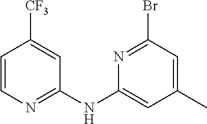 This general procedure describes the procedure for conversion of (A1) to (A) as shown in Scheme 16. To a mixture of compound of formula (A1) (1 mmol), 1° or 2° alcohol (5 mmol), and triphenylphosphine (resin-bound, 1.6 mmol/g loading, 2 mmol) in tetrahydrofuran is added di-tert-butyl azodicarboxylate (2 mmol) at 20° C. The reaction mixture is stirred at 20° C. for 16 hours. The reaction mixture is diluted with TFA (1 mL) and water (1 drop). The mixture is stirred for 30 minutes. The mixture is then filtered through CELITE, washing with dichloromethane (3×). The filtrate is concentrated under reduced pressure to afford the crude residue TFA salt. The residue is diluted carefully with saturated aqueous sodium bicarbonate solution and ethyl acetate. The organic layer is separated, washed with brine, dried over magnesium sulfate, filtered, and concentrated under reduced pressure to afford the crude residue free base. The residue is purified by column chromatography on silica gel (ethyl acetate/hexanes, linear gradient) to afford the product residue. The residue is lyophilized from acetonitrile and water to afford a compound of formula (A).