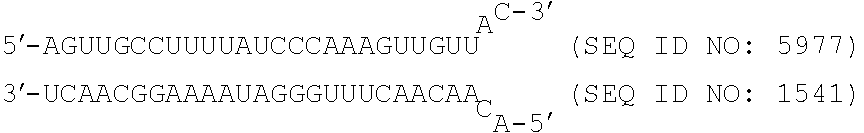 As shown in above Table 14, 348 of 440 asymmetric DsiRNAs examined in human HeLa cells showed greater than 70% reduction of human β-catenin levels in HeLa cells at 1 nM. Of these 348 DsiRNAs, 317 exhibited 80% or greater reduction of human β-catenin levels in HeLa cells at 1 nM, and 229 exhibited 90% or greater reduction of human β-catenin levels in HeLa cells at 1 nM. A number of these DsiRNAs uniquely targeted human β-catenin.