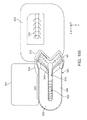 Another embodiment of a needle trap 311 is illustrated in FIG. 296. In this embodiment, two separate needle slots 349 can be formed in the housing 295 with the needle slots 349 positioned on opposite sides of the needle driver slot 343. Compressible members 347 can be secured to the housing 295 and adjacent to each of the needle slots 349. The needles 104 can be inserted into either of the needle slots 349 by sliding a needle driver 198 that is grasping a needle 104 through the needle driver slot 343.