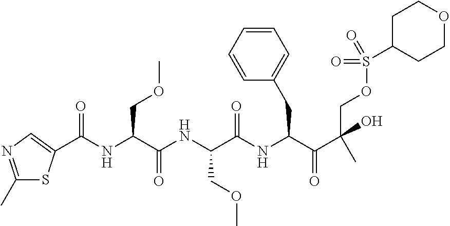 FIG. 38 is a scheme showing the synthesis of an embodiment of a thiazole carboxamide prodrug of epoxy ketone proteasome inhibitors.