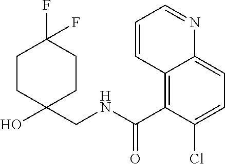 - 6-chloro-N-{[(1S,3S)-1-hydroxy-3-methylcyclohexyl]methyl}-2-(4-hydroxypiperidin-1-yl]quinoline-5-carboxamide; and