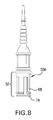 FIG. 10 is a fourth embodiment of the cartridge of the present invention. In FIG. 10 the fourth embodiment of the body portion 50 is shown analogous to that shown in FIG. 9, wherein in addition, there are no multiple members 68 and the hollow tubular portion 50A is extended distally away from the tip portion. FIG. 10 is shown partially cut away in the regions of body portion 50 and generally hollow tubular portion 50A to more clearly show the hollow aspect.