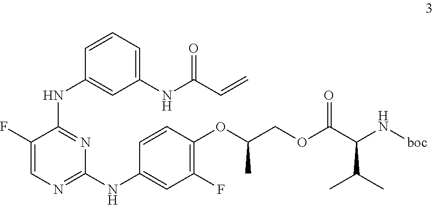 - OZROAAKMSNVOKX-GYCJOSAFSA-N C=CC(=O)NC1=CC=CC(NC2=NC(NC3=CC(F)=C(O[C@H](C)COC(=O)[C@@H](N)C(C)C)C=C3)=NC=C2F)=C1 Chemical compound C=CC(=O)NC1=CC=CC(NC2=NC(NC3=CC(F)=C(O[C@H](C)COC(=O)[C@@H](N)C(C)C)C=C3)=NC=C2F)=C1 OZROAAKMSNVOKX-GYCJOSAFSA-N 0.000 description 3