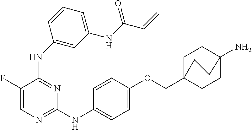 - AYPVIBZTYJYHQB-UHFFFAOYSA-N C=CC(=O)NC1=CC=CC(NC2=NC(NC3=CC=C(OCC4CCN(C)CC4)C=C3)=NC=C2F)=C1 Chemical compound C=CC(=O)NC1=CC=CC(NC2=NC(NC3=CC=C(OCC4CCN(C)CC4)C=C3)=NC=C2F)=C1 AYPVIBZTYJYHQB-UHFFFAOYSA-N 0.000 description 3