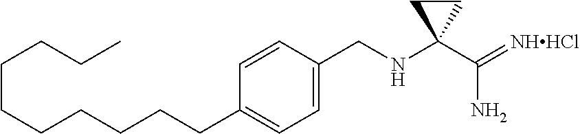 General procedure H was used to convert 0.21 grams (0.56 mmols) of 29 to the title product using 112 μL of 0.5M sodium methoxide in methanol (0.003 grams, 0.056 mmols), 6 mL of anhydrous methanol and 0.033 grams (0.62 mmols) of ammonium chloride. After previously described recrystallization procedures 0.084 grams (0.2 mmols, 36%) of VPC96091 was recovered as a powdery white solid and submitted for biological evaluation. 1H NMR (500 MHz, CD3OD) δ 7.63 (d, J=8.0 Hz, 2H), 7.30 (d, J=8.0 Hz, 2H), 4.73 (t, J=7.5 Hz, 1H), 3.87 (dd, J=15.4, 9.0 Hz, 1H), 3.73-3.60 (m, 1H), 2.67 (t, J=7.6 Hz, 2H), 2.54 (dd, J=13.3, 6.6 Hz, 1H), 2.12-1.93 (m, 2H), 1.71-1.56 (m, 1H), 1.34-1.28 (m, 18H), 0.90 (t, J=6.9 Hz, 3H). 13C NMR (126 MHz, CD3OD) δ 171.79, 146.52, 131.91, 128.06, 127.63, 58.94, 50.59, 35.36, 31.66, 31.14, 31.03, 29.33, 29.28, 29.15, 29.06, 28.88, 25.27, 22.32, 13.03.