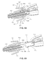 FIG. 69 is a schematic diagram illustrating an isometric cut-away view of a portion of the deployment device of FIG. 66 as a front delivery assembly has been fully disengaged from a base assembly;