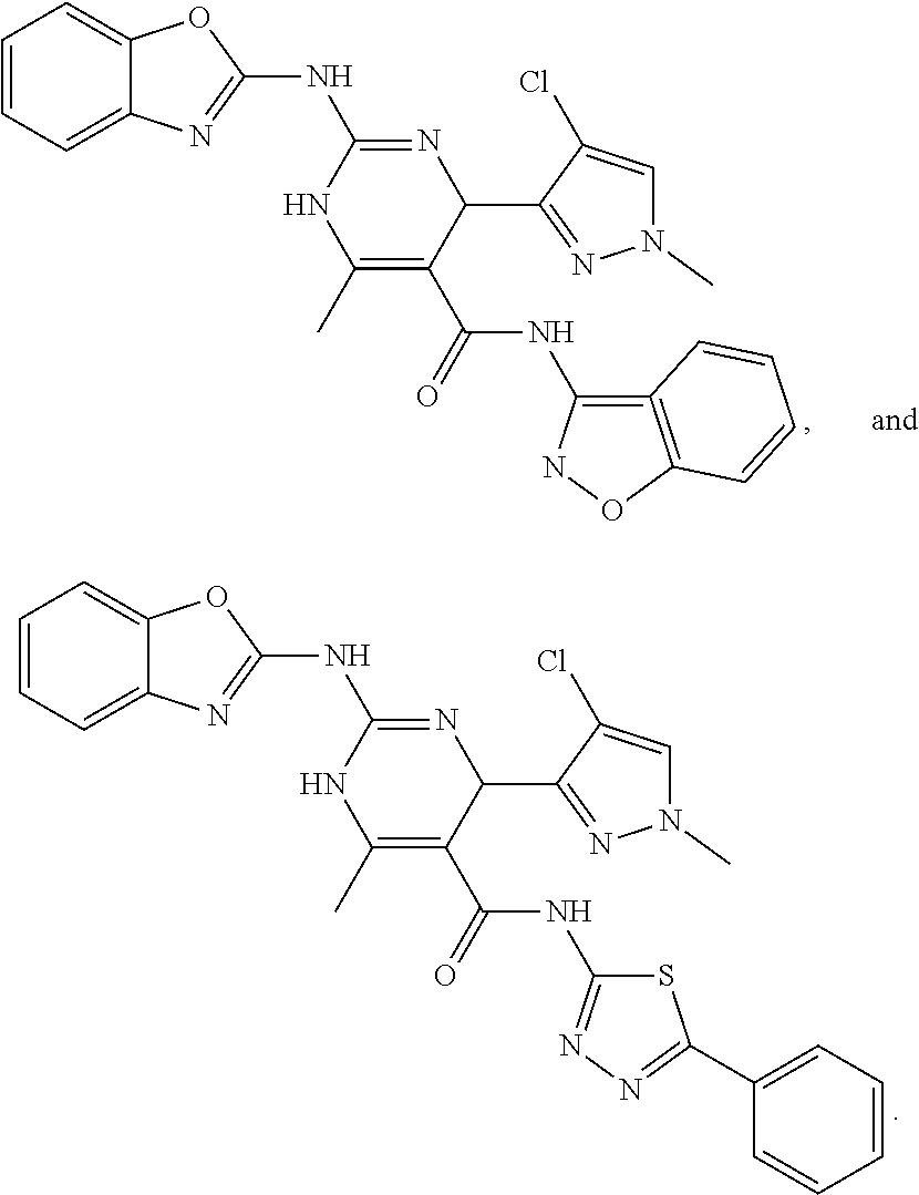 It will be understood that the position of double bonds in a dihydropyrimidinyl ring is not fixed and that any structure comprising a dihydropyrimidinyl ring also includes tautomers thereof. For example, the structure