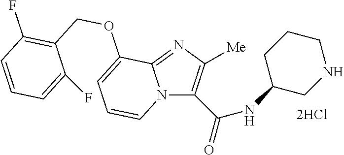 In addition, pyrazole derivatives or pyrazolo[3,4-b]pyridine derivatives are disclosed as the sGC activating compounds in International Publications WO 2000/06569, WO 2000/21954, WO 2001/83490, WO 2003/004503, WO 2003/095451, WO 2003/086407, WO 2003/097063, WO 2007/124854, WO 2007/128454, WO 2008/031513, WO 2008/061657, WO 2010/078900, and WO 2010/079120. However, in any of these documents, there is no disclosure or suggestion of compounds having an imidazo[1,2-a]pyridine skeleton.