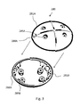 FIGS. 2E and 2F illustrate an ellipsoidal battery unit according to one embodiment in a three-dimensional perspective view and in top view, respectively.