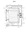 The cabinet 10 includes a plurality of frames 10 a, 10 b, and 10 c. The plurality of frames 10 a, 10 b, and 10 c include a front frame 10 a that constitutes a front side of the cabinet 10, side frames 10 c that constitute sides and a rear side of the cabinet 10, and a bottom frame 10 b that constitutes a bottom side of the cabinet 10.