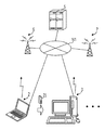 The WWAN is a network using a mobile phone communication network etc., and may be used by many people. The LAN is a network in which for example, devices in the same building are connected by twisted-pair wires, coaxial cables, and optical fibers etc., and data is transmitted and received in the LAN. The WLAN is a network using wireless communication among devices that comply with IEEE 802.11, etc. The effective communication range of the WLAN may be in stores or homes to which wireless communication relays are installed. A wireless communication station 6 that supports the WWAN and a wireless communication station 7 that supports the WLAN are connected to the network 1.