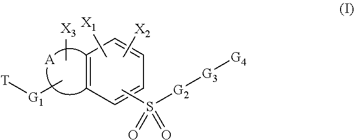 In certain embodiments, compounds of Formula I include compounds wherein G4 is selected from the group consisting of optionally substituted aryl and optionally substituted heteroaryl. In certain embodiments, G4 may be optionally substituted phenyl or optionally substituted pyridinyl. In further embodiments, G4 may be singly or doubly substituted with halogen, lower alkyl, lower perhaloalkyl, lower haloalkoxy, or lower perhaloalkoxy. In related embodiments, G4 may have a structural formula selected from the group consisting of: