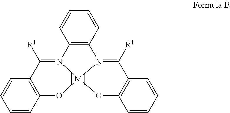 Particular preference is given also to the salophen type (Formula B) in which R1 represents H, methyl (Me) or phenyl (Ph), and