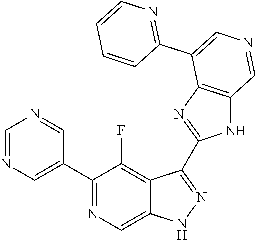 - IBJLNEGMFKFRJN-UHFFFAOYSA-N CC1=NC=C(C2=NC=C3NN=C(C4=NC5=C(C=NC=C5C5=CC(F)=CC=C5)N4)C3=C2)N1C Chemical compound CC1=NC=C(C2=NC=C3NN=C(C4=NC5=C(C=NC=C5C5=CC(F)=CC=C5)N4)C3=C2)N1C IBJLNEGMFKFRJN-UHFFFAOYSA-N 0.000 description 3