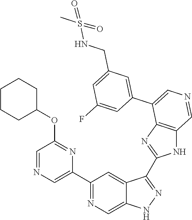 - CIKAVXLXOJTJCA-UHFFFAOYSA-N COC1=CC(C2=NC=C3NN=C(C4=NC5=C(C=NC=C5C5=CC(F)=CC=C5)N4)C3=C2)=CN=C1 Chemical compound COC1=CC(C2=NC=C3NN=C(C4=NC5=C(C=NC=C5C5=CC(F)=CC=C5)N4)C3=C2)=CN=C1 CIKAVXLXOJTJCA-UHFFFAOYSA-N 0.000 description 3