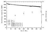 - FIG. 1 is a graph illustrating results on a thickness change of a secondary battery including the electrolyte solution in accordance with example embodiments when charging/discharging at a high temperature according to Experiment 2.