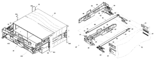 FIG. 16 is a schematic assembled view of the second supporting mechanism 54. The second supporting mechanism 54 is different from the first supporting mechanism 50 generally in that the second supporting mechanism 54 has a swing arm 198 movably connected between the movable member 94 and the first supporting rail 88 of the second supporting mechanism 54. The swing arm 198 has one end engaged with a lower engaging feature 200 of the movable member 94 such that the movable member 94 is at a higher position than the second supporting mechanism 54.
